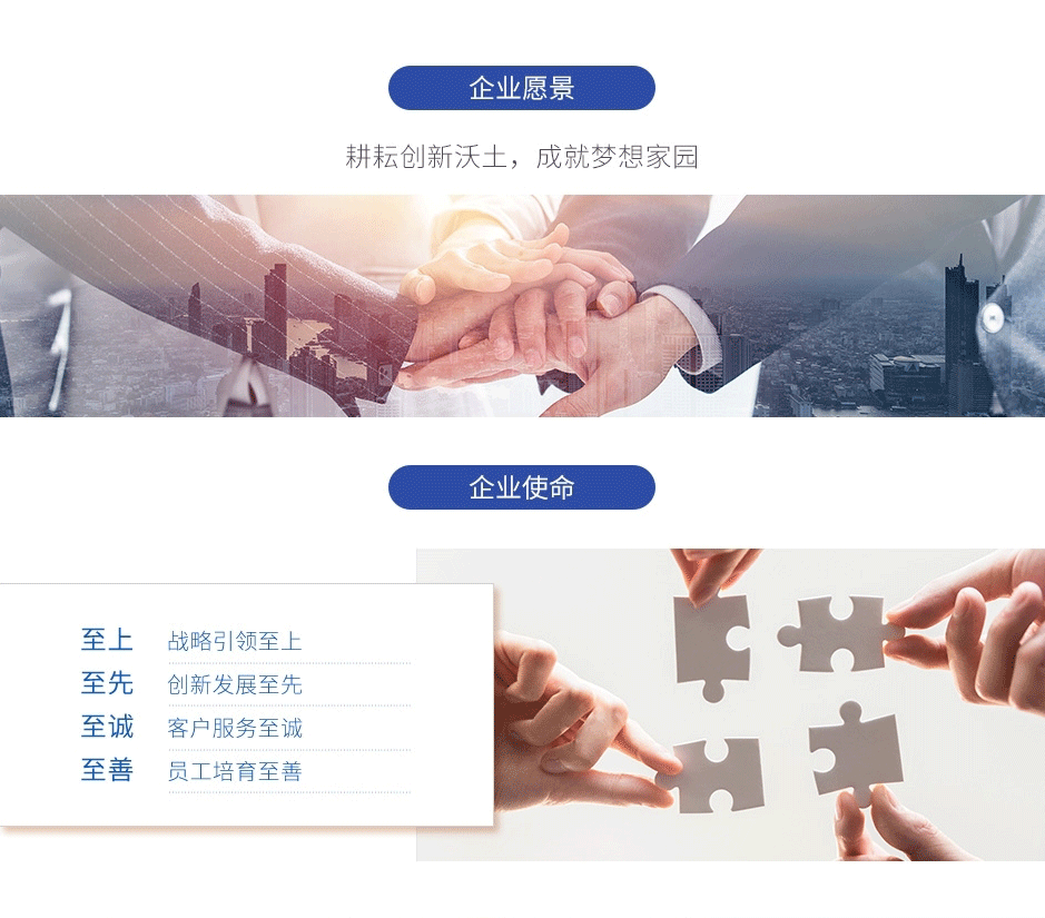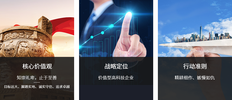 企業使命: 至上,至先,至誠,至善—— 戰略引領至上 創新發展至先 客戶服務至誠 員工培育至善